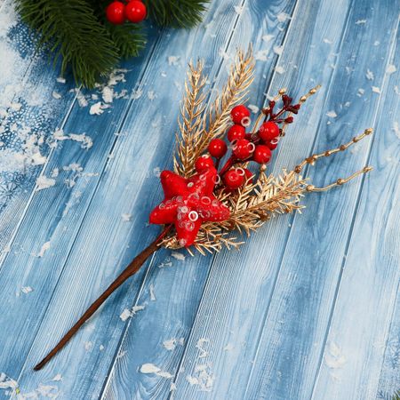 Еловая ветка декоративная «Зимнее волшебство. Грезы», 24 см. Декоративная новогодняя ветка с композициями в красном цвете выполнена из пластика. Ее высота составляет 24 см, что делает ее универсальным элементом для праздничного декора. Эта ветка отлично подойдет для украшения интерьера, создавая атмосферу уюта и волшебства в преддверии Нового года. Особенности <ul> <li> Высота – 24 см, подходит для различных декоративных решений.</li> <li> Цвет – яркий красный, символизирующий тепло и праздничное настроение.</li> <li> Материал – пластик обеспечивает долговечность и легкость в использовании.</li> <li> Стиль – композиции с зимней тематикой для создания праздничной атмосферы.</li> <li> Тематика – Новый год и зимние праздники, вызывающие ощущение сказки и уюта.</li> </ul> Преимущества использования <ul> <li> Добавляет насыщенный красный акцент в интерьер благодаря качественным материалам.</li> <li> Легко сочетается с другими новогодними украшениями: гирляндами, снежинками, свечами.</li> <li> Многофункциональна: подходит для украшения стен, столов или зимних композиций на полках.</li> </ul> Эта ветка с композициями станет ярким дополнением вашего праздничного декора. Ее аккуратный дизайн помогает создать атмосферу сказочного уюта. Простая в использовании и долговечная, она прослужит вам долгие годы, радуя глаз в каждый зимний сезон.