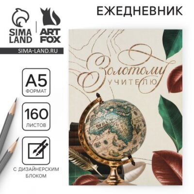 Ежедневник «Золотому учителю», формат А5, 160 листов, мягкая обложка. Ежедневник отлично подойдет в качестве подарка. Яркий дизайн несомненно привлечет внимание и будет выделяться , а удобный формат позволит использовать с комфортом. • Пиши • Планируй • Выполняй <ul> <li> Обложка : мягкая;</li> <li> Количество листов: 160;</li> <li> Крепление : на склейке;</li> <li> Особенности : дизайнерский блок;</li> <li> Формат: А5;</li> <li> Упаковка: пленка.</li> </ul> Состав: -Бумага, картон.