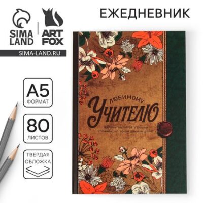 Ежедневник «Любимому учителю», твердая обложка, формат А5, 80 листов. Ежедневник отлично подойдет в качестве подарка. Яркий дизайн несомненно привлечет внимание и будет выделяться , а удобный формат позволит использовать с комфортом. • Пиши • Планируй • Выполняй <ul> <li> Обложка : твердая;</li> <li> Количество листов: 80;</li> <li> Крепление : сшивной;</li> <li> Линовка : линейка;</li> <li> Формат: А5;</li> <li> Упаковка: пленка.</li> </ul> Состав: -Бумага, картон.