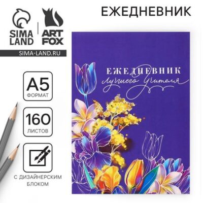 Ежедневник «Учителю: Ежедневник лучшего учителя», формат А5, 160 листов, мягкая обложка. Ежедневник отлично подойдет в качестве подарка. Яркий дизайн несомненно привлечет внимание и будет выделяться , а удобный формат позволит использовать с комфортом. • Пиши • Планируй • Выполняй <ul> <li> Обложка : мягкая;</li> <li> Количество листов: 160;</li> <li> Крепление : на склейке;</li> <li> Особенности : дизайнерский блок;</li> <li> Формат: А5;</li> <li> Упаковка: пленка.</li> </ul> Состав: -Бумага, картон.