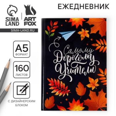 Ежедневник «Самому дорогому учителю», формат А5, твердая обложка картон 7БЦ, 160 листов. Ежедневник торговой марки ArtFox отлично подойдет в качестве подарка. Яркий дизайн несомненно привлечет внимание и будет выделяться , а удобный формат позволит использовать с комфортом. • Пиши • Планируй • Выполняй <ul> <li> Обложка : твердая;</li> <li> Количество листов: 160;</li> <li> Крепление : сшивной;</li> <li> Особенности : дизайнерский блок;</li> <li> Формат: А5;</li> <li> Упаковка: пленка.</li> </ul> Состав: -Бумага, картон.