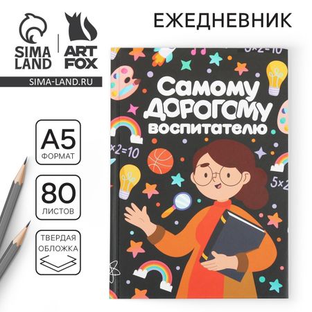 Ежедневник «Самому дорогому воспитателю» твердая обложка, формат А5, 80 листов. Ежедневник отлично подойдет в качестве подарка. Яркий дизайн несомненно привлечет внимание и будет выделяться , а удобный формат позволит использовать с комфортом. • Пиши • Планируй • Выполняй <ul> <li> Обложка : твердая;</li> <li> Количество листов: 80;</li> <li> Крепление : сшивной;</li> <li> Линовка : линейка;</li> <li> Формат: А5;</li> <li> Упаковка: пленка.</li> </ul> Состав: -Бумага, картон.