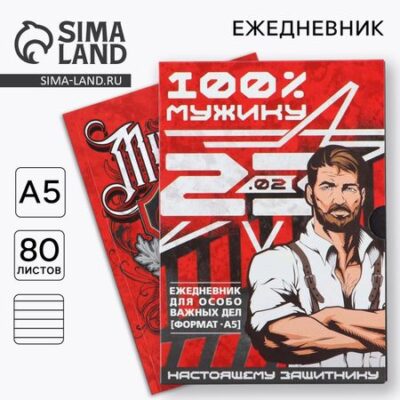 Ежедневник А5, 80 листов, недатированный, в подарочной коробке «23 февраля». Ежедневник в подарочной коробке станет прекрасным подарком на праздник. • Мечтай; • Записывай; • Выполняй. <ul> <li> Плотность, г/м²: 80;</li> <li> Вид обложки: мягкая;</li> <li> Формат:А5;</li> <li> Форма: прямоугольник;</li> <li> Количество листов: 80;</li> <li> Линовка блока: линейка;</li> <li> Тип скрепления: на склейке.</li> </ul>