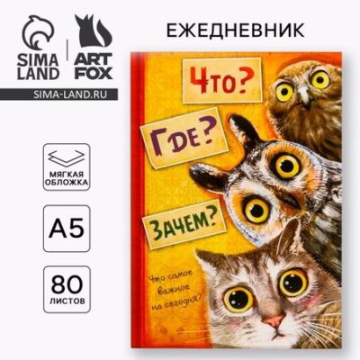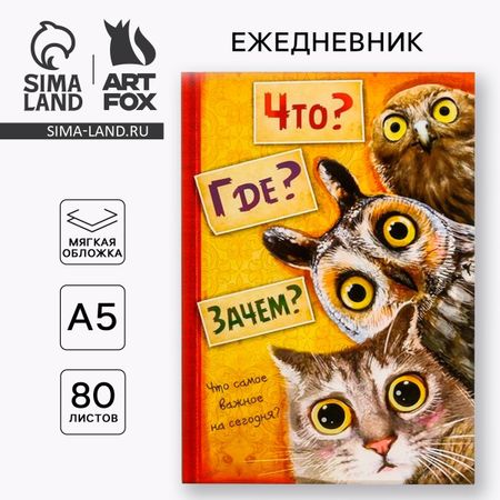 Ежедневник А5, 80 листов в тонкой обложке «Что? Где? Зачем?». Ежедневник — необходимая вещь для любого человека. Такая записная книжка поможет упорядочить важную информацию, не даст забыть о запланированных делах и событиях. <b> Преимущества:</b> <ul> <li> дизайнерская обложка, с эффектом УФ-лака;</li> <li> 80 листов;</li> <li> индивидуальный внутренний блок.</li> </ul> Стройте планы, записывайте мудрые мысли, сохраняйте важную информацию. Хороший ежедневник — половина успеха!