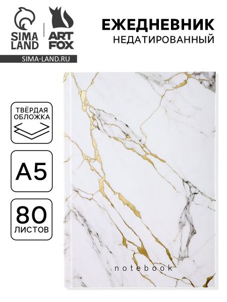 Ежедневник А5, 80 листов в твердой обложке «Белый мрамор». Ежедневник – лучший помощник делового человека. Он пригодится всегда и везде: планируйте, записывайте задачи, контакты, важную информацию, полезные расчеты и идеи — все, что понадобится для успешной работы. <b> Преимущества:</b> <ul> <li> твердая обложка;</li> <li> недатированные листы;</li> <li> индивидуальный дизайн.</li> </ul> Стройте планы, записывайте мудрые мысли, сохраняйте важную информацию. Хороший ежедневник — половина успеха!
