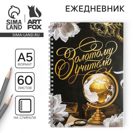 Ежедневник на гребне «Золотому учителю», формат А5, 60 листов, твердая обложка. Ежедневник отлично подойдет в качестве подарка. Яркий дизайн несомненно привлечет внимание и будет выделяться , а удобный формат позволит использовать с комфортом. • Пиши • Планируй • Выполняй <ul> <li> Обложка : твердая;</li> <li> Количество листов: 60;</li> <li> Крепление : на гребне;</li> <li> Линовка : линейка;</li> <li> Формат: А5;</li> <li> Упаковка: пленка.</li> </ul> Состав: -Бумага, картон.