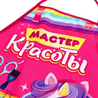 Фартук «Мастер красоты». <em> Создай образ настоящего стилиста!</em> <strong> «Мастер красоты»</strong> — это фартук для сюжетно-ролевых игр. Ребенок почувствует себя настоящим стилистом или парикмахером, развивая воображение и коммуникативные навыки. <b> Особенности</b> <ul> <li> Фартук регулируется с помощью завязок. Подходит детям от 3 лет, не стесняет движений во время активных игр.</li> <li> Водоотталкивающий материал спасает одежду от пластилина, красок и кинетического песка.</li> <li> Размер изделия: длина — 50 см, ширина по поясу — 38 см.</li> <li> Нетканый материал легкий и приятный на ощупь. Плотные швы не расходятся даже при активном использовании.</li> </ul> <b> Развиваемся играя</b> Игра в стилиста учит ребенка общаться и фантазировать. Фартук используют на творческих занятиях с сухими материалами — он защитит одежду во время лепки или рисования. Набор подходит девочкам от 3 лет. Качественные материалы, продуманный крой и яркий дизайн. Набор произведен в России с учетом требований к детским товарам. Подарите ребенку возможность примерить интересную роль — пусть игра станет еще увлекательнее!
