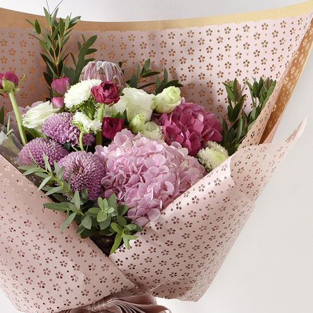 Фетр ламинированный с перфорацией «Цветочки», розовый, 57 см × 5 м. Назначение: чтобы «одеть» букет в «зимний наряд» надо подобрать не только теплую, но и соответствующую сезону по своим визуальным и тактильным ощущениям упаковку. И для этой задачи хорошо подходит так называемый «3D-фетр». Эту универсальную упаковку можно использовать при создании тематических декораций, оформления торжественных событий, вечеринок, праздников, для оформления подарков, а также использовать для хобби, творчества и скрапбукинга. Характеристика: ламинированный фетр назван так из-за рельефности самого материала, который производят путем горячего тиснения из полипропиленовых волокон. Использование полипропиленовых волокон делает этот материал абсолютно экологически чистым, так как через какое-то время полипропилен разлагается не оставаясь в природе. В отличие от традиционного флористического фетра он обладает большей плотностью и гидрофильностью, т.е. он не боится воды, так как практически водонепроницаем. Подобно тканям, его продают тонкими листами.