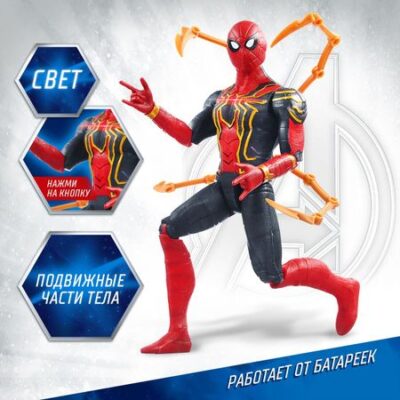 Фигурка «Человек Паук с клешнями», Мстители, свет. Погрузитесь в мир невероятных приключений с Человеком-Пауком в красно-черном костюме, оснащенным высокотехнологичными клешнями! Этот усовершенствованный супергерой готов к самым сложным миссиям, используя свои уникальные способности и мощное снаряжение. Эффектный дизайн, подвижные руки, клешни и светящийся элемент на груди делают игры с этим Человеком-Пауком еще более зрелищными и увлекательными. <strong> Особенности игрушки</strong> <ul> <li> Подходит для детей от 3 лет.</li> <li> Эффектный дизайн: красно-черный костюм Человека-Паука придает герою стильный и современный облик, подчеркивающий его силу.</li> <li> Клешни добавляют динамичности, превращая героя в еще более мощного борца с угрозами.</li> <li> Светящийся элемент на груди делает фигурку особенно привлекательной и впечатляющей.</li> <li> Подвижные клешни и руки позволяют разыгрывать самые фантастические и зрелищные сцены.</li> <li> Часть коллекционной серии героев Marvel, вдохновляющей на сбор всей команды супергероев.</li> <li> Изготовлен из безопасного и прочного пластика, что гарантирует долговечность и безопасность.</li> </ul> <strong> Польза от игры</strong> <ul> <li> Развитие воображения: с этим Человеком-Пауком дети могут придумывать фантастические истории и миссии, раскрывая свой творческий потенциал.</li> <li> Увлекательные приключения: возможность разыгрывать сцены из фильмов или создавать новые сюжеты делает игры яркими и интересными.</li> <li> Интерес к коллекционированию: фигурка в красно-черном костюме с клешнями станет настоящей изюминкой коллекции и вдохновит на сбор всей серии супергероев.</li> </ul>