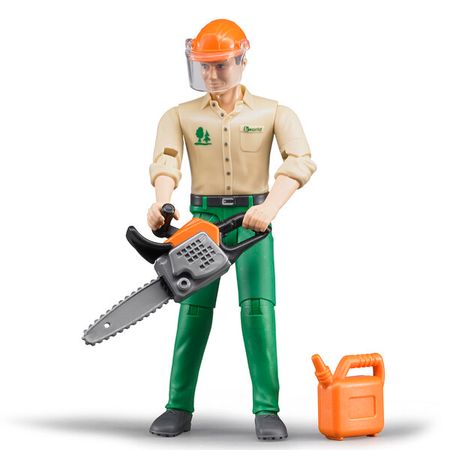 Фигурка лесозаготовщика с аксессуарами Фигурка лесозаготовщика от Bruder реалистична, а значит, игра с ней будет интереснее и ярче. Ваш ребенок узнает о новой интересной профессии, о которой он мог даже не слышать. Благодаря такой игрушке, его кругозор расширится, знаний станет больше. Фигурка лесозаготовщика с аксессуарами является уменьшенной копией реального человека, все пропорции соблюдены, и именно это придает игре малыша небывалую реалистичность. Главная задача лесозаготовщика – спилить дерево и переправить его на дальнейшую переработку. Все инструменты для этого у него есть: канистра с бензином, электропила в руках. Играя такой фигуркой от Брудер, ребенок начнет интересоваться каждой деталью, узнавая много нового в игровой форме. Он узнает, как при помощи электрической пилы можно распилить дерево на куски и отправить на переработку. Комплектация и функциональность В комплект входят: фигурка лесозаготовщика; канистра для бензина; электрическая пила. Высота лесозаготовщика 10,7 см. Коллекция Для того чтобы игра вашего ребенка была интереснее, а знаний о профессиях становилось все больше, можно купить реалистичные фигурки от Bruder других профессий, представленные на сайте. Особенности фигурки. Поскольку сама фигурка реалистична, ее одежда тоже выглядит натуральной: рубашка с закатанными рукавами, рабочие штаны. На голове яркая каска с экраном для защиты лица. Занимаясь этой игрушкой, ребенок будет узнавать не только информацию о профессиях, но и об их специфике, методах защиты. Подвижные конечности помогут придавать фигурке различные позы, имитируя рабочий процесс. Какие навыки развиваются Для нормального формирования образного мышления у вашего ребенка очень важны сюжетно-ролевые игры.Игры с фигурками различных профессий – отличный способ информировать малыша. Купив эту фигурку, родители дают ему возможность познакомиться с новой профессией. Игрушка безопасна для детей! Вся продукция, представленная на сайте,сертифицирована. Фигурка лесозаготовщика выполнена с применением красок иматериалов нетоксичного типа, не вызывает аллергических реакций, а значит,является совершенно безопасной игрушкой.