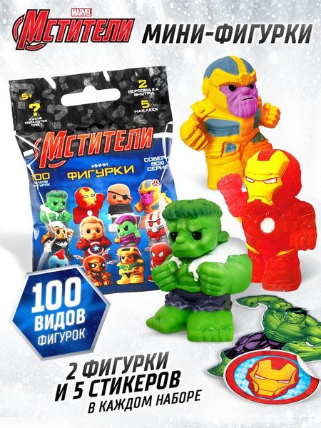 Соберите всю коллекцию мини-фигурок «Мстители»!Внутри каждого пакетика скрываются две из 100 уникальных фигурок ваших любимых героев и злодеев из вселенной Marvel. Какая именно пара вам попадётся — всегда остаётся загадкой, что делает каждую распаковку волнующим моментом! Ожидание сюрприза приносит радость и захватывающее чувство открытия — ведь вы никогда не знаете, кто окажется в вашем наборе.Создайте свою собственную команду героев и злодеев!Обменивайтесь фигурками с друзьями, чтобы быстрее собрать всю коллекцию, открыть новых персонажей и познакомиться со всеми участниками этой увлекательной вселенной.ОсобенностиПодходит для детей от 5 лет.В комплект входят 2 фигурки и 5 ярких наклеек.Компактный размер — удобно взять с собой куда угодно.Выполнены из прочного и безопасного пластика.Пометка «МИКС» означает случайный выбор фигурок в каждом пакетике. Возможно выпадение повторных персонажей.Соберите их всех и ощутите силу Marvel в ваших руках!