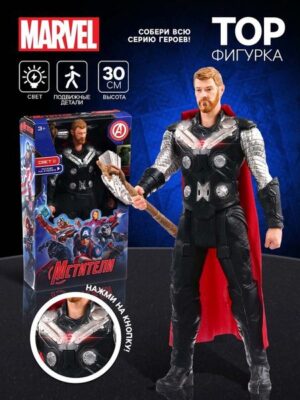 Встретьтесь с Тором — могущественным богом грома и неотъемлемым героем вселенной Marvel! Величественный воин с легендарным молотом Мьёльниром готов сразиться с любым врагом, чтобы защитить Асгард и Землю. Светящийся элемент на груди и подвижные руки добавляют фигуре реализма, делая игры ещё более увлекательными. С Тором каждый ребёнок сможет ощутить себя частью эпического противостояния добра и зла!Особенности игрушкиПодходит для детей от 3 лет.Размер: 17,6 х 6 х 30 см.Тор с короткими волосами — в современном образе, подчёркивающем его готовность к новым вызовам.Светящийся элемент на груди добавляет магии и эффектности во время игры.Подвижные руки позволяют ставить Тора в различные боевые и героические позы.Часть коллекционной серии героев Marvel, вдохновляющей на сбор всей команды Мстителей.Изготовлен из безопасного и прочного пластика, что гарантирует надёжность и безопасность.Польза от игрыРазвитие воображения: игры с участием Тора стимулируют фантазию, позволяя детям придумывать свои эпические истории.Увлекательные приключения: дети могут разыгрывать сцены из фильмов или создавать новые миссии с участием могущественного героя.Интерес к коллекционированию: фигурка станет центральной частью коллекции и вдохновит на сбор всей команды супергероев.
