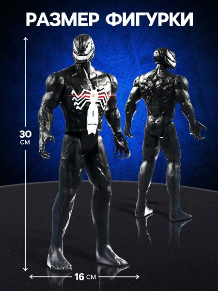 Фигурка «Веном», Мстители. Погрузитесь в мир супергероев и злодеев с детализированной фигуркой Венома! Этот легендарный персонаж из вселенной Marvel станет отличным дополнением к коллекции и подарит увлекательные часы игры. <ul> <li> Эффекты: светящийся элемент на груди.</li> <li> Подвижные элементы: руки и ноги двигаются, позволяя менять позы персонажа.</li> <li> Дизайн: динамичная поза и детализированная прорисовка костюма.</li> <li> Размер: оптимальная высота для удобной игры.</li> <li> Упаковка: красочная коробка с тематическим оформлением.</li> </ul> Соберите всю серию героев и устраивайте эпичные сражения! Отличный подарок для юных фанатов комиксов и любителей супергеройских историй.