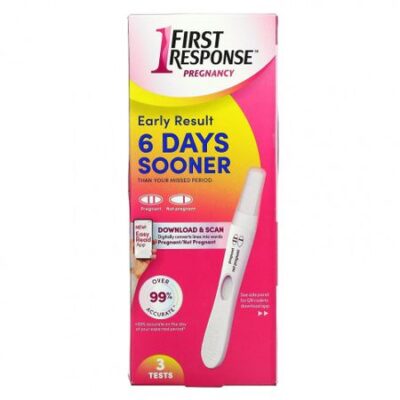 На 6 дней раньше задержки вашего циклаТочность свыше 99,9% >, 99% точности в день начала ожидаемой менструации*Для одноразового использованияFirst Response™ определяет гормон беременности на 6 дней раньше первого дня задержки менструации (за 5 дней до начала ожидаемой менструации).Что нужно знать о раннем тестировании… у некоторых беременных женщин количество гормона беременности в моче в день проведения теста может быть недостаточным для его определения. Количество гормона беременности увеличивается с течением времени. В ходе лабораторных исследований First Response™ обнаружил гормон беременности у 76% беременных женщин за 5 дней до начала ожидаемой менструации, у 96% беременных женщин за 4 дня до предполагаемой менструации, у >, 99% беременных женщин за 3 дня до начала предполагаемой менструации, у >, 99% беременных за 2 дня до начала ожидаемой менструации, у >, 99% беременных за 1 день до начала ожидаемой менструации и у >, 99% беременных в день начала ожидаемой менструации.* >, 99% точности при определении уровня типичных гормонов при беременности. Обратите внимание, что уровни гормонов могут отличаться. См. вкладыш.