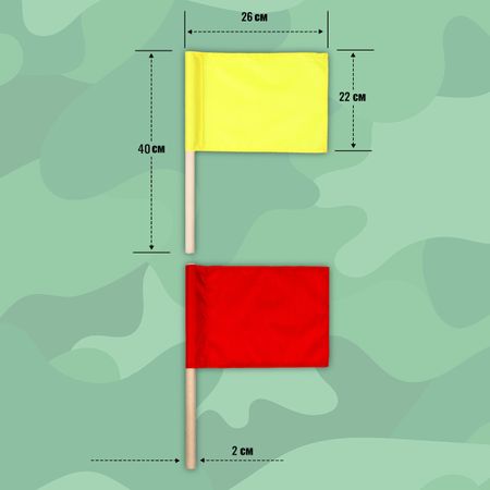 Флажки сигнальные, красный и желтый, в чехле 22×32 см. Набор уставных армейских сигнальных флажков в камуфляжном чехле предназначены для подачи визуальных сигналов. Флажки изготовлены из прочного материала и имеют удобную ручку, которая обеспечивает надежный хват. Компактный чехол в комплекте позволяет удобно хранить и транспортировать флажки. Чехол сшит из камуфлированной ткани (пиксель) имеет шлевку под ремень.