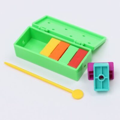 Фокус «Разноцветные блоки», 6+. Добро пожаловать в мир волшебства и магии! Удиви своих друзей или членов семьи интересным фокусом. Хорошо попрактикуйся несколько раз, прежде чем выступить с фокусом перед публикой. Лучше всего тренироваться перед зеркалом, чтобы видеть и контролировать все движения. <b> Инструкция</b> Сложи все разноцветные блоки в коробочку в один ряд. Закрой коробочку и проткни ее гвоздем — он войдет в отверстие, пройдет сквозь блоки и выйдет с другой стороны. Открой коробочку и переверни ее — блоки не выпадут. Убери гвоздь и высыпь блоки на стол. Позволь зрителям осмотреть предметы и выбрать два блока. Начни складывать блоки в коробку как в начале фокуса, но два выбранных зрителями цвета положи горизонтально, по обе стороны от гвоздя. Крышка скроет твои действия от зрителей, и они подумают, что блоки вернулись в коробку в обычном положении. Затем закрой коробочку, проткни ее гвоздем, открой и переверни — два блока, которые выбрали зрители, выпали, а остальные четыре остались внутри! Дари радость своим зрителям, впечатляй их своим талантом и получай массу удовольствия!