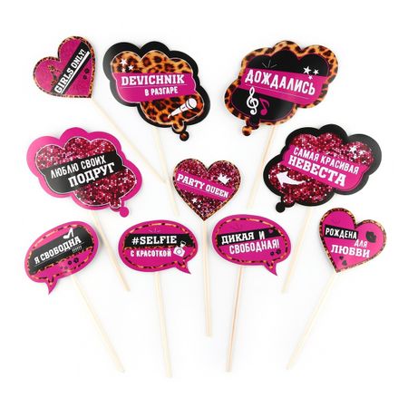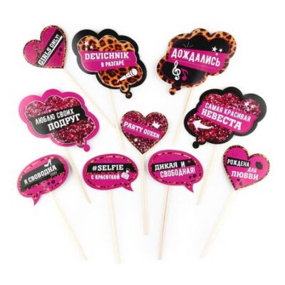 Фотобутафория на девичник «Девичник в разгаре», 10 шт.. Набор для фотосессии 10 предметов. Аксессуары для фотосессий сделают любую вечеринку незабываемой, ведь ни один праздник не обходится без фото, будь то день рождения, гендерпати, 23 февраля, 8 марта, Новый год, свадьба, девичник или просто праздничная вечеринка. На любом празднике хочется выделяться, а карточки для фотобутофории отлично выполнят эту задачу, сделают вас заметным и неповторимым. Любой ребенок, девочка или мальчик, обязательно захотят сфотографироваться с набором аксессуаров для фотосессии. Данный набор фотобутофории отличный вариант для девичника, замечательно впишется в любую тематику торжества.