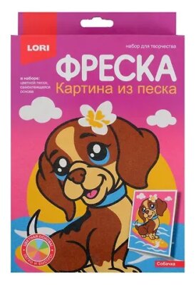 Главная » Товары для детей Фреска. Картина из песка «Собачка» Просмотров 2 Предлагаем вашему вниманию предлагается «Фреска. Собачка». В наборе: цветной песок, самоклеящаяся основа.