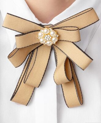 Галстук-бант бежевого цвета с брошью на ленте с фиксатором для девочки. Модель, выполненная из качественного полиэстера, является износостойкой, поэтому будет длительно радовать вас великолепным внешним видом. При помощи удобного пластикового фиксатора можно регулировать посадку индивидуально по обхвату шеи. Модель из глянцевой ткани позволит украсить и разнообразить любые официальные и повседневные образы. Темная окантовка и брошь, состоящая из жемчужинок и стразов, позволят поставить стильный акцент во внешнем виде ученицы. Детский бант незаменим на таких мероприятиях как День знаний, выпускной, последний звонок, а также на любых торжественных линейках и на каждый день в школу. Сочетайте модель с любой одеждой из коллекции школьной формы от Баттон Блю, создавая нарядные комбинации.