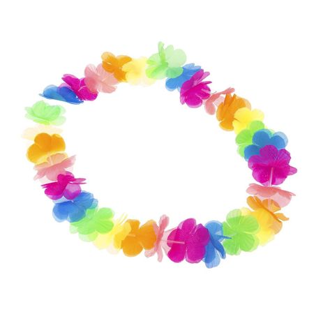 Гавайское ожерелье «Разноцветные цветы». Гавайское ожерелье «Разноцветные цветы» — это стильный аксессуар, который поможет создать праздничное настроение. Оно станет отличным дополнением к пляжному образу, костюму для тематической вечеринки или просто поднимет настроение в обычный день. <b> Особенности ожерелья</b> <ul> <li> Сочетание разноцветных цветов создает веселый и жизнерадостный образ.</li> <li> Длина ожерелья в сложенном виде составляет 52 см, что позволяет легко подобрать его под любой размер шеи.</li> <li> Ожерелье изготовлено из качественных материалов, которые сохранят яркость цветов на долгое время.</li> </ul> Гавайское ожерелье из разноцветных цветов — это не просто аксессуар, это символ радости, лета и позитива. Оно станет прекрасным подарком для себя и близких.