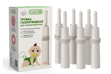 Газоотводная трубка для новорожденных многоразовая, Longmed+ / белая/ 6шт