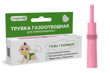 Газоотводная трубка для новорожденных многоразовая, Longmed+ / розовая/ 1шт