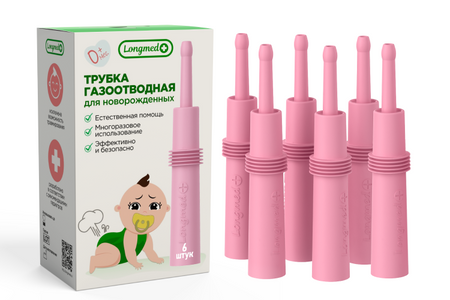 Газоотводная трубка для новорожденных многоразовая, Longmed+ / розовая/ 6шт
