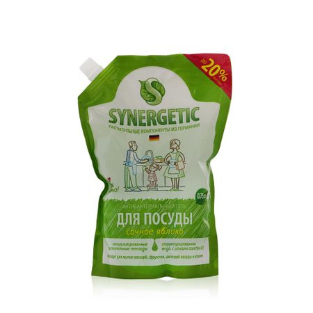 Гель для мытья посуды Synergetic » Сочное яблоко » антибактериальный , дой-пак 750мл