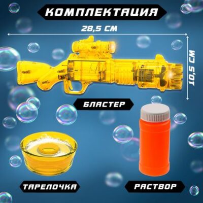 Генератор мыльных пузырей «Бластер» желтый, световые эффекты. Генератор мыльных пузырей «Бластер» станет прекрасным дополнением к детским играм. Он создает множество пузырей, наполняя пространство радостью и весельем. Компактный размер устройства позволяет использовать его как дома, так и на улице, делая любую прогулку или праздник ярче. <b> Особенности</b> <ul> <li> Устройство создает множество мыльных пузырей за считанные секунды, привлекая внимание и вызывая восторг у детей.</li> <li> В комплект входит раствор для мыльных пузырей, чтобы начать играть сразу после покупки.</li> <li> Световые эффекты добавляют динамики и создают атмосферу веселья.</li> </ul> <b> Польза для развития</b> Игра с мыльными пузырями развивает мелкую моторику, координацию и воображение у детей. Генератор подойдет для игр на детских праздниках, в саду или дома. Его можно использовать для развлечения на прогулке или для создания красивого антуража во время фотосессий. Компактность и легкость устройства делают его удобным для переноски.