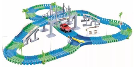 У этого красочного игрового трека так много достоинств, что их можно перечислять очень долго. Но главные из них — это возможность видоизменять конструкцию дороги и направление движения машинки по ней, а также прочные пластиковые детали, которые ещё и красиво светятся в темноте. Особенности:Набор разноцветных деталей позволяет мальчишкам собрать гибкий трек, который можно выгибать внутрь или наружу.Крохам необходимо лишь правильно соединить яркие элементы между собой, которые светятся в темноте, а потом отправить в путь реалистичную машинку с вращающимися колесиками.В итоге дети получают не просто трек, а извилистую дорогу с 2 уровнями, стрелкой для смены направления и красивым мостом.На обороте упаковки мальчишки обнаружат различные варианты сборки трека, а еще они могут создать свой собственный вариант дороги.Сборка трека станет хорошей тренировкой для мелкой моторики рук ребёнка, а также его пространственного мышления.А играя с собранной дорогой, мальчишки еще и в полной мере проявят свою фантазию и воображение.Элементы из набора выполнены из высококачественного и очень прочного пластика, который окрашен в насыщенные цвета сертифицированными, стойкими красителями. Характеристики:Возраст: от 3 лет.Питание: 2 батарейки АА (не в комплекте).Упаковка: картонная коробка.Материал: пластик, металл. В комплекте: 216 деталей (элементы трека, машинка, рельсы, мост, аксессуары).