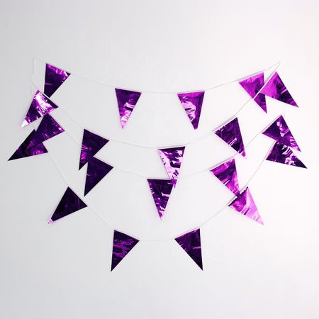 Гирлянда «Флажки», 20 флажков, 10 метров, фиолетовая. Яркая фиолетовая гирлянда из 20 треугольных флажков станет великолепным украшением для любого праздника! Длина гирлянды составляет 10 метров, что позволяет эффектно оформить любое пространство. <b> Особенности</b> <ul> <li> Фиолетовый цвет придает гирлянде праздничный и запоминающийся вид</li> <li> Подходит для оформления детских праздников, свадеб, дней рождения и других торжеств в помещении и на свежем воздухе</li> <li> Гирлянда легко крепится к любой поверхности</li> <li> Изготовлена из прочного материала, который сохранит яркость цветов на долгое время</li> <li> Идеально подходит для оформления фотозон, украшения стен и потолков, создание праздничной атмосферы</li> </ul> Элегантная гирлянда из ярких флажков добавит нотку роскоши в любой интерьер.