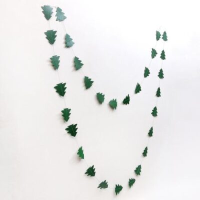 Гирлянда бумажная «Ёлочки», длина 4 м, зеленая. Хотите сделать интерьер праздничным в преддверии зимнего торжества? Гирлянда «Ёлочки» создаст атмосферу сказки, волшебства и чудес дома или дополнит образ! А еще если таким аксессуаром дополнить фон для фотосессии — снимки получатся более стильными и эффектными. <b> Особеноости</b> <ul> <li> Длина — 4 м, в наборе 30 фигурок зеленых елочек</li> <li> Изготовлена из прочного материала, который сохранит яркость цветов на долгое время </li> <li> Применяется для оформления помещения или праздничной фотозоны</li> <li> Блестящее двустороннее покрытие эффектно переливается на солнце</li> <li> Клейкой стороны на фигурках не предусмотрено, что делает декорацию универсальной. Ее можно закрепить иголкой, булавкой или клейкой лентой на любой поверхности</li> </ul>