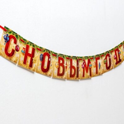 Гирлянда на ленте «С Новым годом!», длина 200 см. Растяжка — гирлянда "С Новым годом" — красивый и стильный атрибут праздничного оформления. Бумажная гирлянда, выполненная из плотного картона (200 грамм), будет отлично смотреться на кадрах в фотозоне и других локациях. Картонная гирлянда выполнена в современном стиле и подходит под различную тематику оформления праздника. Вывеска регулируется по длине и по желанию может использоваться в один или два ряда. Размер флажка — 12 × 12 см. Проденьте сквозь них ленточку и праздничное украшение готово!
