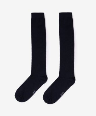 Синие гольфы — изделие из разряда маст-хэв! Это не только удобный, но и остромодный аксессуар, способный подчеркнуть энергичный школьный образ в стиле преппи. Гольфы выполнены из дышащей эластичной пряжи на основе хлопка, создающей приятный тактильный контакт с кожей.