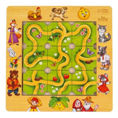 Головоломка «Составь дорожку. Русские народные сказки», 9 деталей. Головоломка "Составь дорожку" — настоящая находка для тех, кто любит приключения и прогулки, а также для тех, кто любит интересные задания. Суть игры:во время чтения сказки (можно и по памяти) соединить героев в нужном порядке. Вы можете с малышом сами выбрать, какую сказку вы будете разыгрывать (они обозначены на обороте): "Колобок", "Репка", "Курочка Ряба". Также предлагаем разыгрывать другие сказки и собственные сюжеты. Занятия с такой головоломкой развивают мелкую моторику, пространственное мышление, ребенок изучает соотношение "больше-меньше", учится выполнять действия по алгоритму.