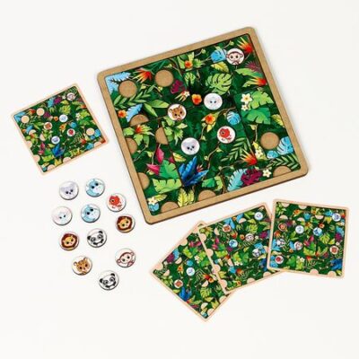 Головоломка «Джунгли» и мемори. Настольная игра «Джунгли и Мемори» — это увлекательный набор для развития памяти, внимания и логики у детей от 3 лет. В комплекте есть все необходимое позволяющие играть в две разные игры: решать головоломки и тренировать память. Игра выполнена из дерева, что делает ее безопасной и долговечной. <b> Особенности</b> <ul> <li> Фишки и детали для игры в мемори и решения головоломок.</li> <li> Схемы с заданиями для разнообразия игрового процесса.</li> <li> Изготовлено из натурального дерева, безопасного для детей.</li> <li> Подходит для развития мелкой моторики, памяти и логического мышления.</li> <li> Игра рассчитана на 1–2 участников.</li> </ul> Игра «Джунгли и Мемори» помогает ребенку развивать память, внимание и логику. Решение головоломок по схемам тренирует пространственное мышление, а игра в мемори улучшает зрительную память. Игра также способствует развитию мелкой моторики и усидчивости. Используйте схемы для решения головоломок, пряча зверушек в джунглях. Для игры в мемори перемешайте фишки и ищите пары, запоминая их расположение. Придумывайте новые задания, чтобы разнообразить игровой процесс и сделать его еще более увлекательным.