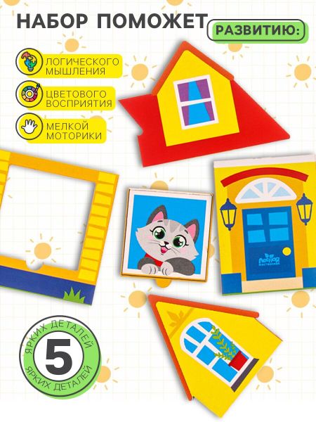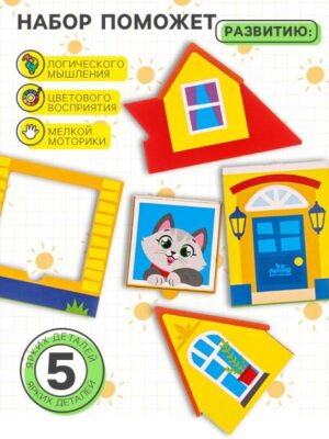 Головоломка «Дом» для самых маленьких. Подарите своему малышу яркую и развивающую головоломку «Дом» — эта красочная игрушка не только увлечет ребенка надолго, но и поможет ему в обучении! <b> Набор поможет развитию:</b> <ul> <li> <b> Мелкой моторики:</b> извлекая и вставляя фигурки, малыш тренирует ловкость и координацию движений пальчиков.</li> <li> <b> Цветового восприятия:</b> элементы разных цветов помогут ребенку запомнить основные цвета и их оттенки.</li> <li> <b> Сенсорного восприятия:</b> фигурки имеют разную форму и текстуру, что стимулирует тактильные ощущения.</li> </ul> <b> Преимущества рамки-вкладыша:</b> <ul> <li> <b> Высокое качество:</b> игрушка выполнена из натурального дерева, тщательно отшлифована и окрашена безопасными красками.</li> <li> <b> Дизайн:</b> яркие цвета привлекают внимание ребенка и делают игру еще более увлекательной.</li> <li> <b> Удобство использования:</b> рамка имеет оптимальный размер для маленьких ручек, а фигурки легко вставляются и вынимаются.</li> </ul> <b> Развлечение и обучение</b> Эта развивающая игра помогает детям не только весело проводить время, но и приобретать важные навыки. Игра способствует развитию цветового восприятия, ловкости и моторики.