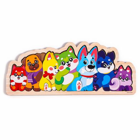 Головоломка деревянная для детей «Собачки», рамка — вкладыш. Деревянная головоломка «Собачки» — это увлекательная игра для малышей от 3 лет, которая помогает развить логику, внимание и мелкую моторику. Набор включает 7 ярких деревянных фигурок, которые нужно собрать в рамку. Игра не только развлекает, но и способствует изучению форм, цветов и особенностей каждого элемента. <b> Особенности</b> <ul> <li> 7 деревянных деталей с изображениями щеночков.</li> <li> Рамка-вкладыш размером удобным для сборки.</li> <li> Изготовлено из натурального дерева, безопасного для детей.</li> <li> Подходит для развития логического мышления и моторики.</li> <li> Яркие персонажи делают игру интересной и запоминающейся.</li> </ul> Игра «Мишки» помогает ребенку развивать пространственное мышление, учит различать формы и цвета, а также тренирует внимательность. Собирая фигурки в рамку, малыш улучшает координацию движений и логику. Игра также способствует развитию речи, если обсуждать с ребенком особенности каждого котика. Предложите ребенку собрать всех котиков в рамку, обращая внимание на их форму и цвет. Обсуждайте с малышом, чем отличаются фигурки, и просите его называть их особенности. Играйте вместе, чтобы помочь ребенку освоить новые навыки и сделать процесс обучения увлекательным.