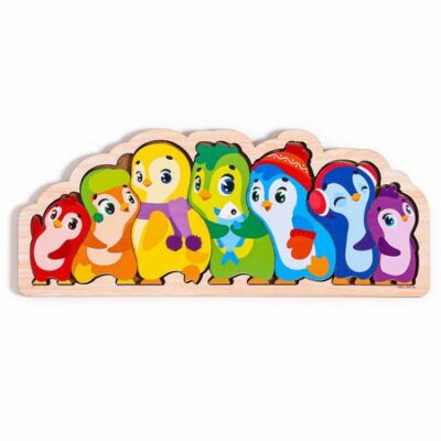 Головоломка деревянная для детей «Пингвины». <b> Головоломка для самых смышленых малышей!</b> Головоломка из отдельных фигурок — это не только игра в предложенной рамке, но и игра с деталями. Перед сборкой можете спросить у малыша название каждого элемента, узнать его отличительные признаки <b> Особенности головоломки:</b> <li> Размер игрушки: 24 х 10 см</li> <li> Количество деталей: 7</li> <li> Все детали выполнены из дерева</li> <b> Яркие персонажи, натуральные материалы, интересная сборка не оставит равнодушным ни ребенка, ни родителя.</b>