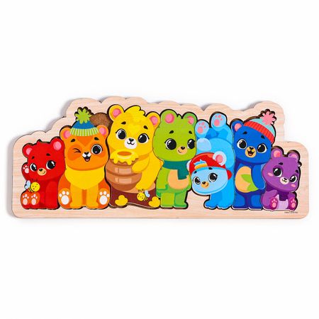 Головоломка деревянная для детей «Мишки», рамка — вкладыш. Деревянная головоломка «Мишки» — это увлекательная игра для малышей от 3 лет, которая помогает развить логику, внимание и мелкую моторику. Набор включает 7 ярких деревянных фигурок, которые нужно собрать в рамку. Игра не только развлекает, но и способствует изучению форм, цветов и особенностей каждого элемента. <b> Особенности</b> <ul> <li> 7 деревянных деталей с изображениями медвежат.</li> <li> Рамка-вкладыш размером удобным для сборки.</li> <li> Изготовлено из натурального дерева, безопасного для детей.</li> <li> Подходит для развития логического мышления и моторики.</li> <li> Яркие персонажи делают игру интересной и запоминающейся.</li> </ul> Игра «Мишки» помогает ребенку развивать пространственное мышление, учит различать формы и цвета, а также тренирует внимательность. Собирая фигурки в рамку, малыш улучшает координацию движений и логику. Игра также способствует развитию речи, если обсуждать с ребенком особенности каждого котика. Предложите ребенку собрать всех котиков в рамку, обращая внимание на их форму и цвет. Обсуждайте с малышом, чем отличаются фигурки, и просите его называть их особенности. Играйте вместе, чтобы помочь ребенку освоить новые навыки и сделать процесс обучения увлекательным.