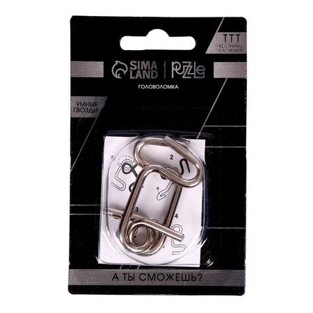 Головоломка металлическая «Игры разума. Умные гвозди» №1, на блистере. Металлическая головоломка «Умные гвозди» №1 — отличный способ проверить свою смекалку и терпение. Игрушка подходит как для детей, так и для взрослых, превращая простое развлечение в интеллектуальный вызов. Вращайте, пробуйте разные комбинации, находите скрытые закономерности! <b> Особенности головоломки</b> <ul> <li> Развивает логику и пространственное мышление.</li> <li> Тренирует усидчивость и концентрацию.</li> <li> Компактный размер — удобно брать с собой.</li> <li> Качественный металл обеспечивает долговечность.</li> <li> Уровень сложности — средний, подойдет для всех возрастов от 7 лет.</li> </ul> <b> Развитие через игру</b> Разгадывание головоломок помогает улучшить логическое мышление, концентрацию и мелкую моторику. Каждая задача требует внимательности и терпения, что делает процесс решения особенно увлекательным. Головоломка станет отличным сюрпризом для друзей, коллег или детей. Ее можно использовать как тренажер для ума или просто расслабиться после рабочего дня.