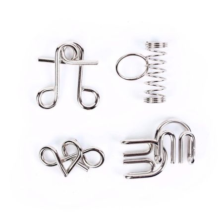 Головоломка металлическая «Загадки Эйнштейна», набор 4 шт.. Металлические головоломки «Загадки Эйнштейна» — это увлекательный набор для любителей логических задач. В комплекте представлены различные головоломки, которые заставят размышлять, анализировать и находить нестандартные решения. Такой формат отлично подходит как для детей, так и для взрослых, ведь тренировка ума полезна в любом возрасте. <b> Особенности набора</b> <ul> <li> 4 головоломки разного типа и сложности.</li> <li> Металлические детали обеспечивают долговечность и надежность.</li> <li> Компактный формат позволяет играть в любом месте — дома, на отдыхе, в дороге.</li> </ul> <b> Развитие через игру</b> Разгадывание головоломок помогает улучшить логическое мышление, концентрацию и мелкую моторику. Каждая задача требует внимательности и терпения, что делает процесс решения особенно увлекательным. Набор головоломок — это не просто игрушка, а отличный инструмент для развития мышления и навыков решения задач.
