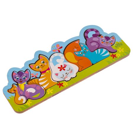 Головоломка рамка — вкладыш «Котики», 7 деталей, 25×10 см. Необычная головоломка с животными сочетает в себе пазл и рамку-вкладыш. Задача крохи — правильно разместить красочные фигурки на деревянном основании, чтобы получилась цельная картинка. <b> Как играть? </b> Определите с малышом положение фигурок и попросите ребенка назвать каждого персонажа. Устройте зверят на предназначенные им места — в этом помогут цветные силуэты на основании игрушки.
