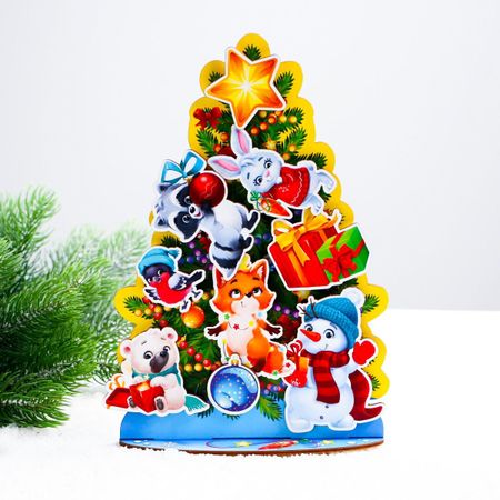 Головоломка с липучками «Новый год! Нарядная гостья». Позвольте малышу приобщиться к самому волшебному празднику года! Пусть ребенок украсит елочку красивыми игрушками. Можете придумывать задания (например, разделить все елочные игрушки на животных/предметы, повесить один предмет выше/ниже другого, посчитать все детали), а также сделать дополнительные детальки самостоятельно. Детали на липучках легко крепятся к елочке. Такую игрушку удобно брать с собой.