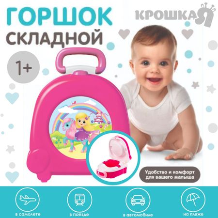 Горшок детский дорожный Крошка Я, складной, переносной, накладка на унитаз, розовый. Детский переносной горшок определенно незаменимая вещь в путешествии с ребенком, особенно если нет возможности попасть в туалет сразу. Легкий и удобный. Имеется замок и ручка для комфортной переноски, вместительная емкость, прорезиненная крышка, которая герметично закрывается. Очень удобно использовать в самолете, в поезде, в дороге, в гостях. Размер горшка в сложенном виде: 23 * 25 * 10 см. Материал изготовления: полипропилен. Цвет: розовый