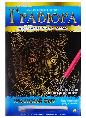 Гравюра А4 в конверте. Золото. КРАСИВЫЙ ТИГР (Арт. Г-9369)