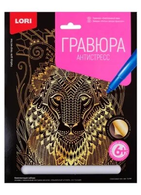 Гравюра Антистресс LORI большая с эффектом золота Златогривый лев