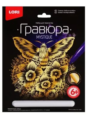 Гравюра — особый вид графического искусства. Сцарапывая верхний слой гравюры специальным штихелем, входящим в набор, ребёнок может самостоятельно создать настоящее произведение искусства и почувствовать себя гравером. Готовую гравюру можно вставить в упаковку-рамку. Размер гравюр 18*24 см.