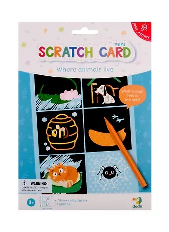 Разве можно нарисовать красочные картинки с помощью одной палочки и листа картона? Легко! Гравюра — это художественная мастерская в кармане. Принцип создания картинки -удаление верхнего черного защитного слоя при помощи штихеля! Предложите малышу поразмышлять какое животное спрятано на картинке и проверьте вместе.