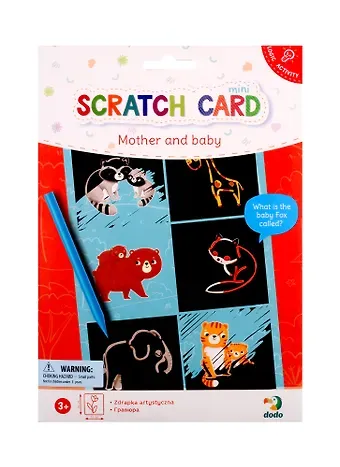 Гравюра — это художественная мастерская в кармане. Принцип создания картинки — удаление верхнего черного защитного слоя при помощи штихеля! Предложите ребенку поразмышлять малыш какого животного спрятан на картинке и проверьте вместе.